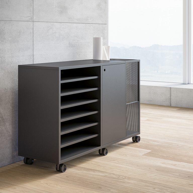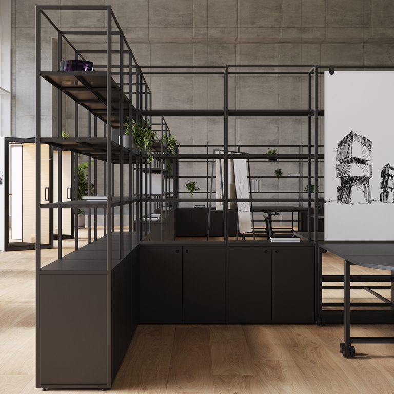 Contenitori Atelier coordinati al sistema di arredi.