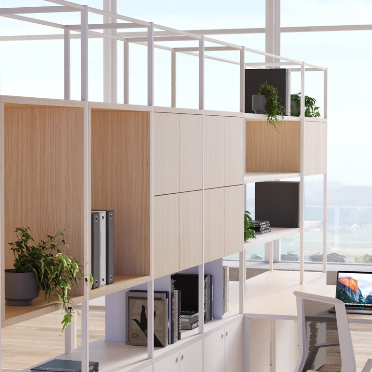Librerie Atelier a giorno per ambienti di lavoro contemporanei.