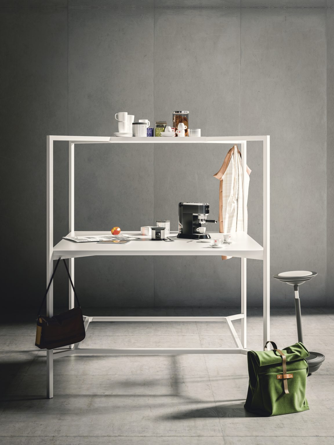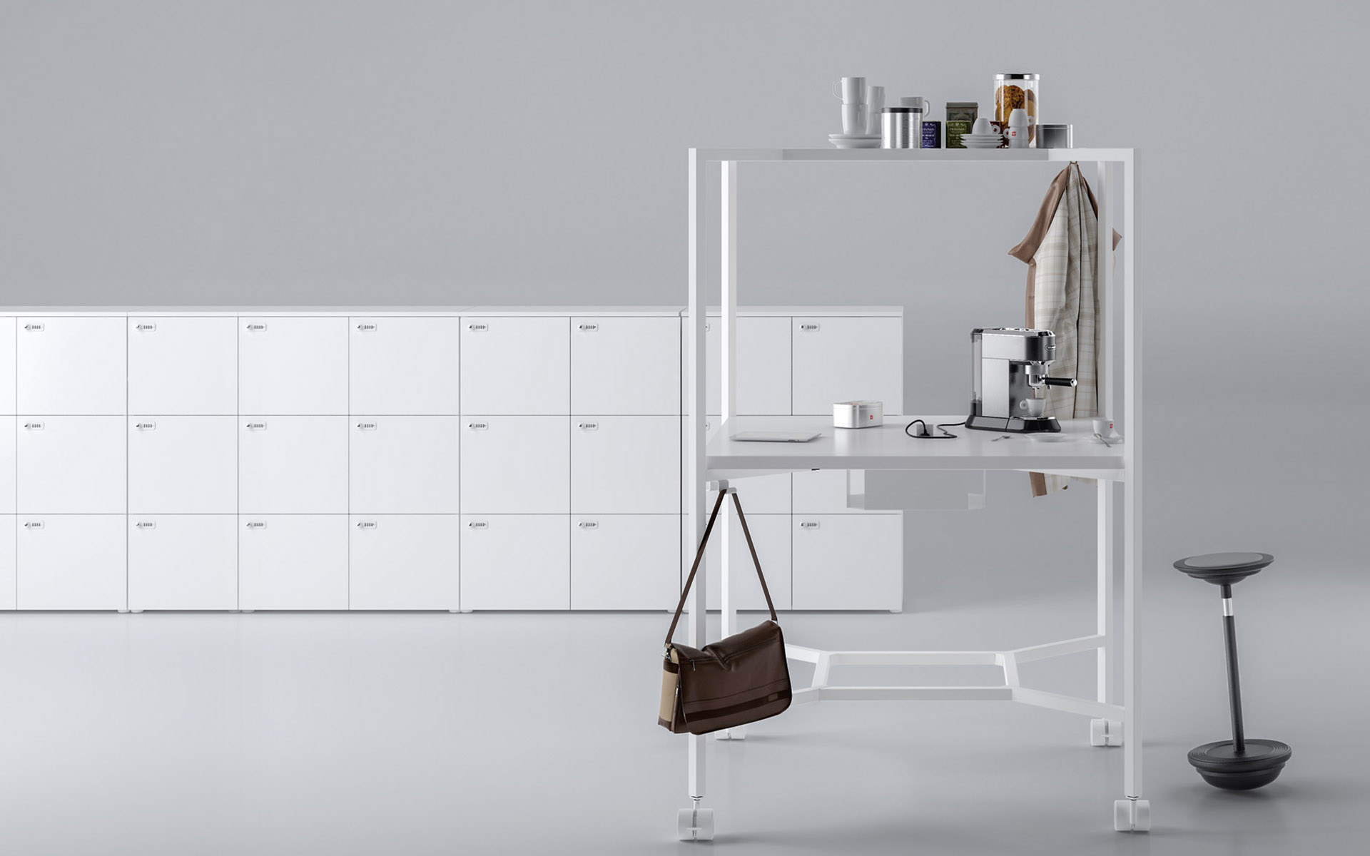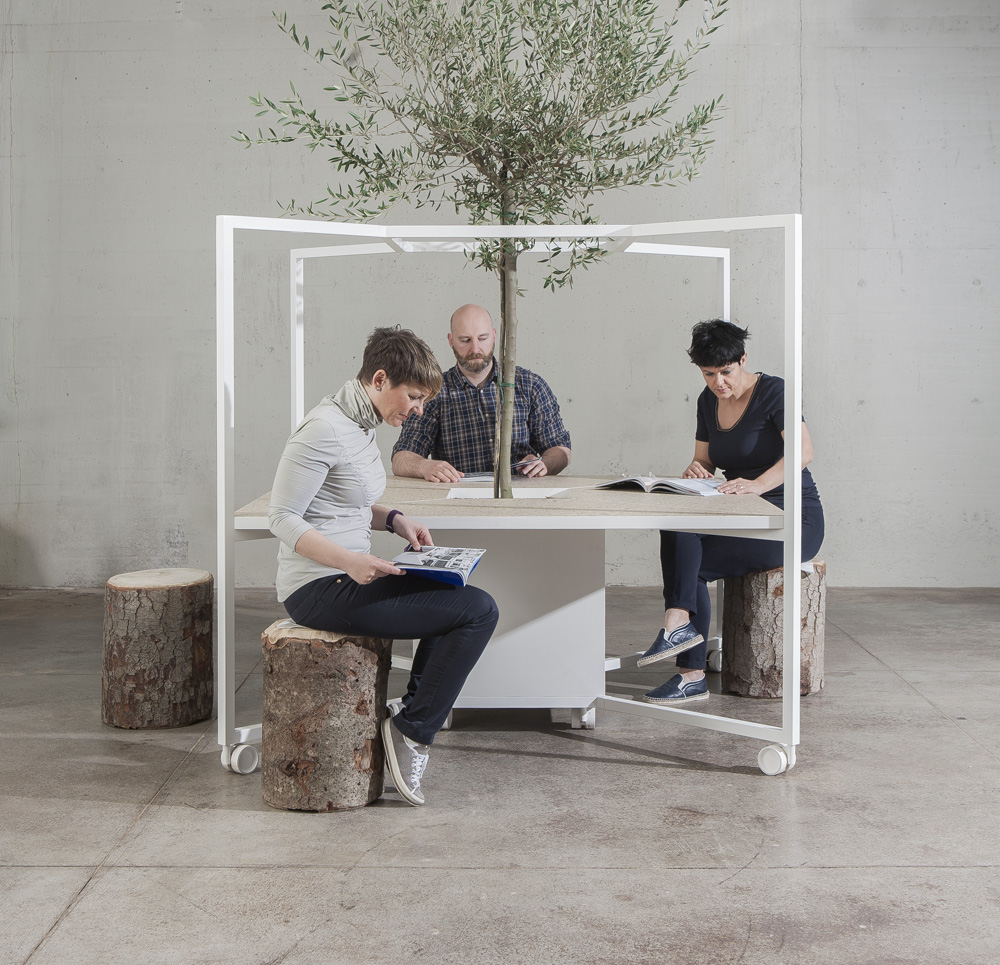 Hub mette al centro le persone, generando situazioni piacevoli che favoriscono i processi innovativi, la produttività e il benessere. Grazie alla versione Bar con ruote, anche la pausa caffè o l’incontro informale può diventare un momento creativo.