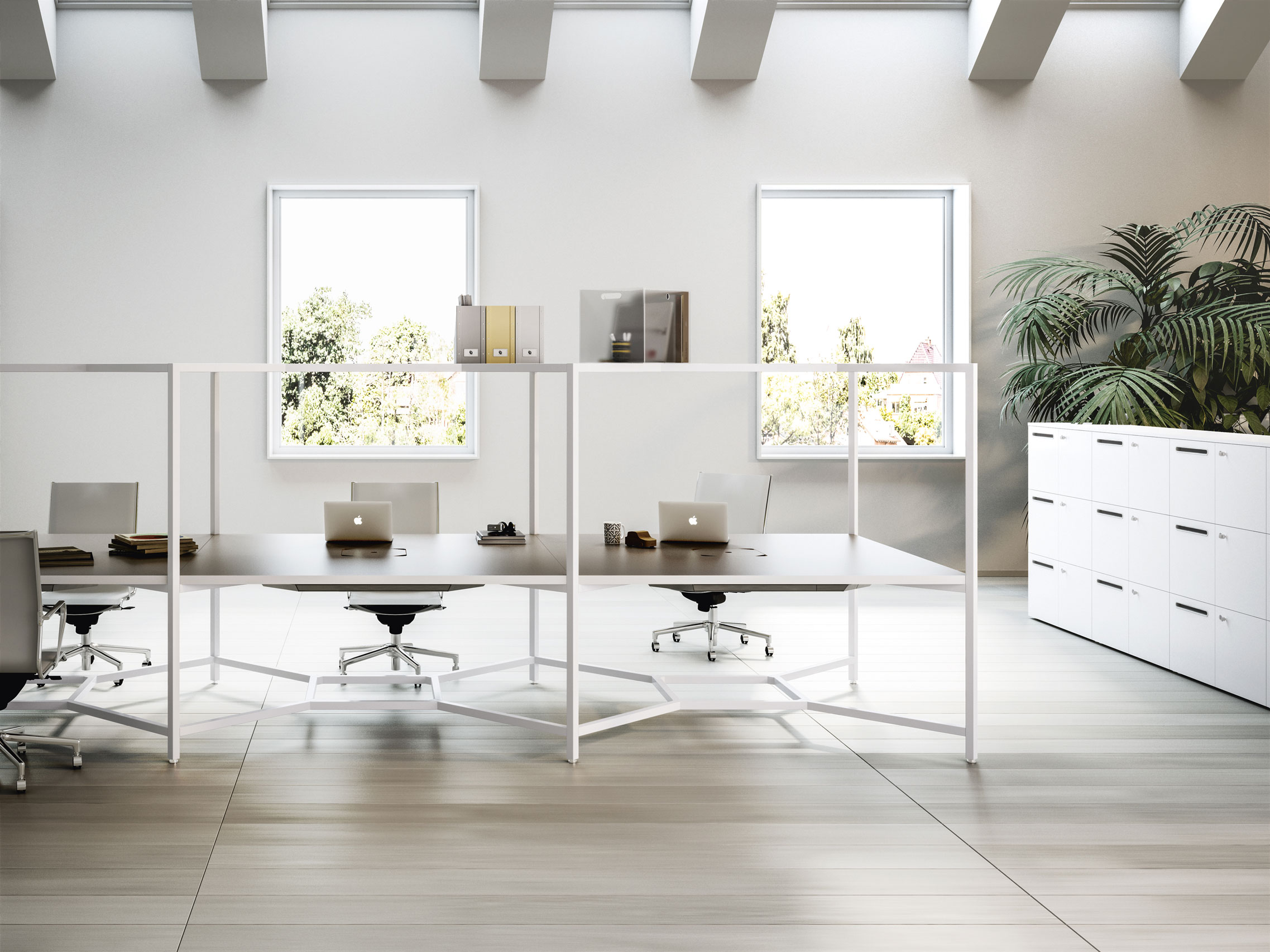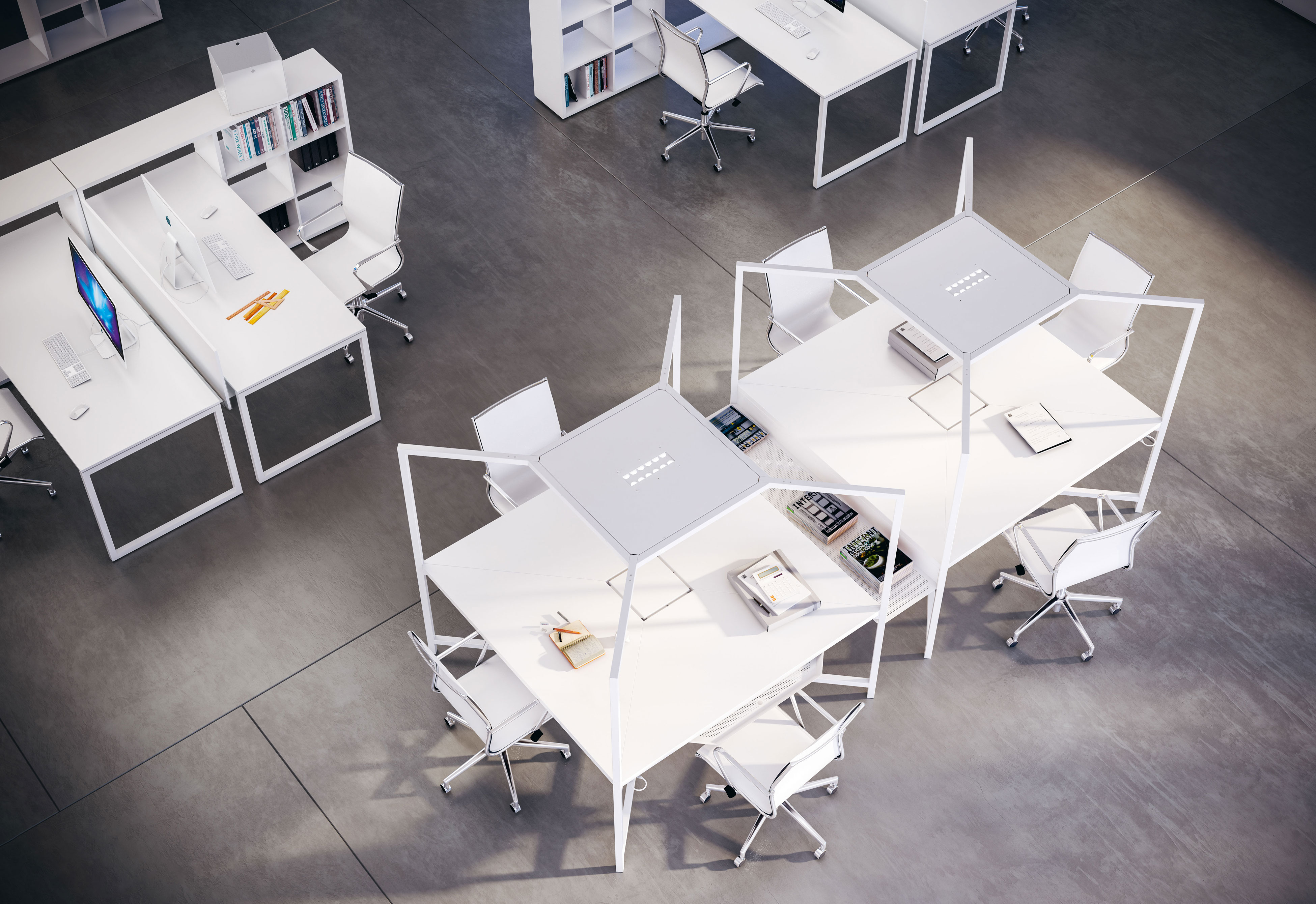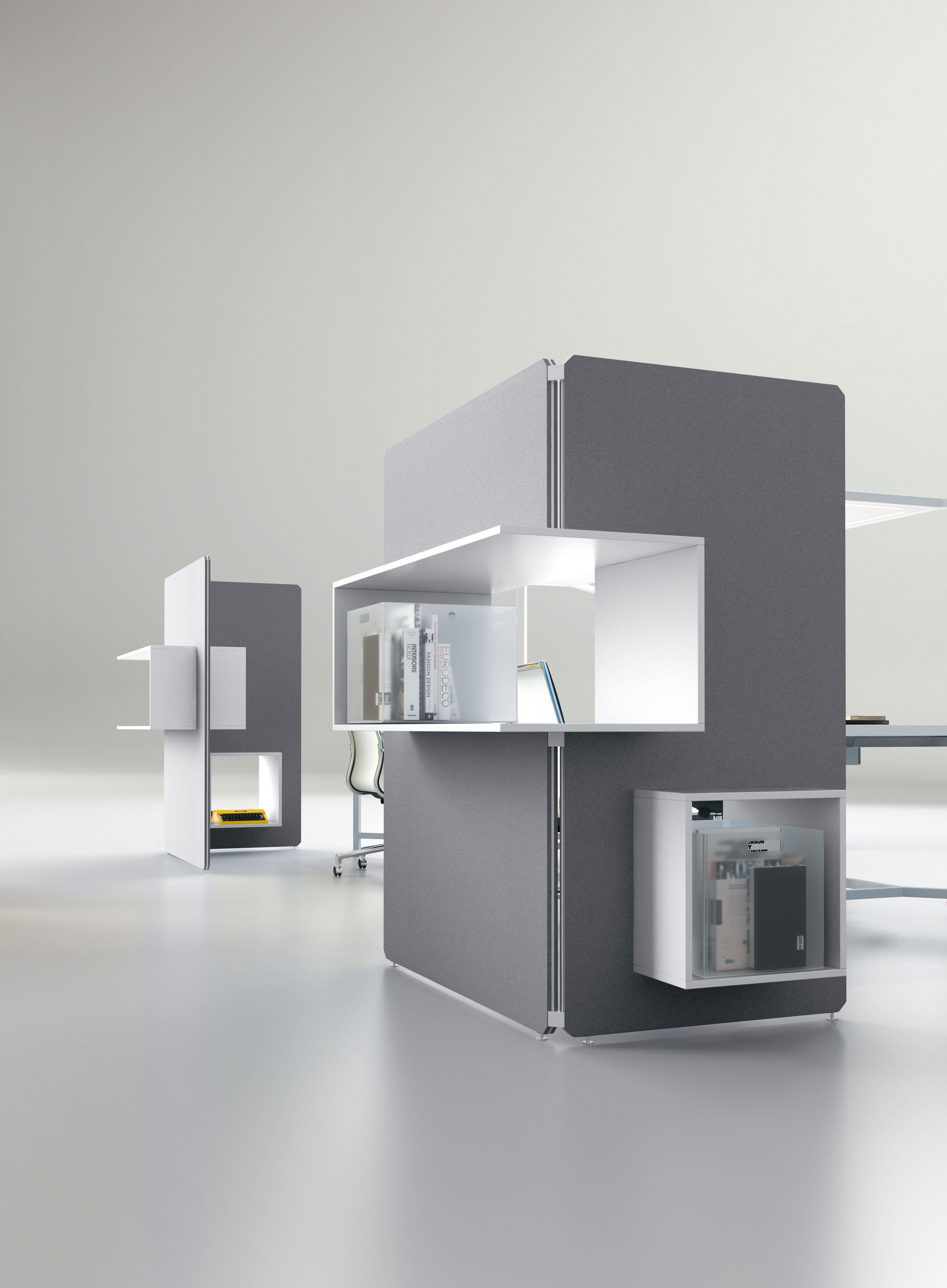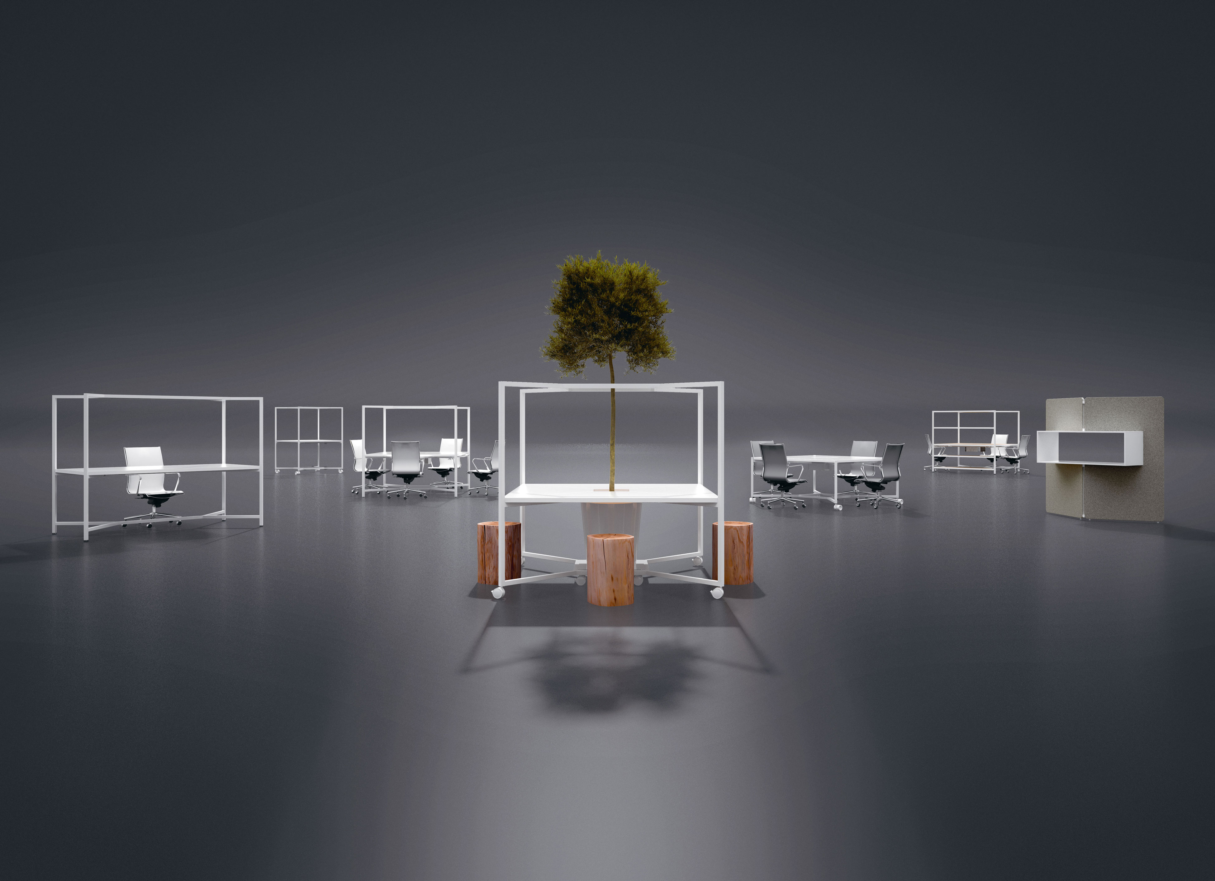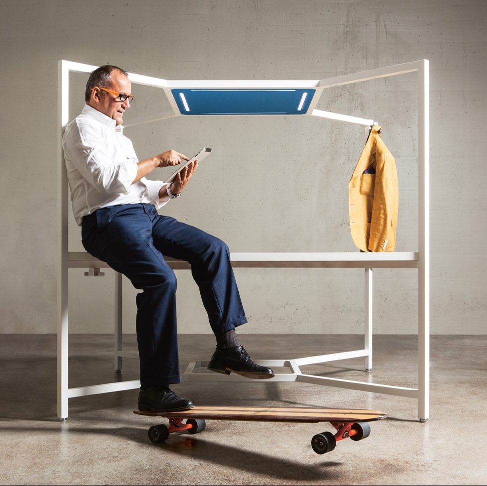 Una scrivania, un luogo di incontro, uno spazio per pensare, progettare, rilassarsi: i diversi moduli Hub – con postazione singola o multipla, fissi oppure con ruote – e i numerosi accessori, permettono di interpretare liberamente l’ambiente di lavoro.
