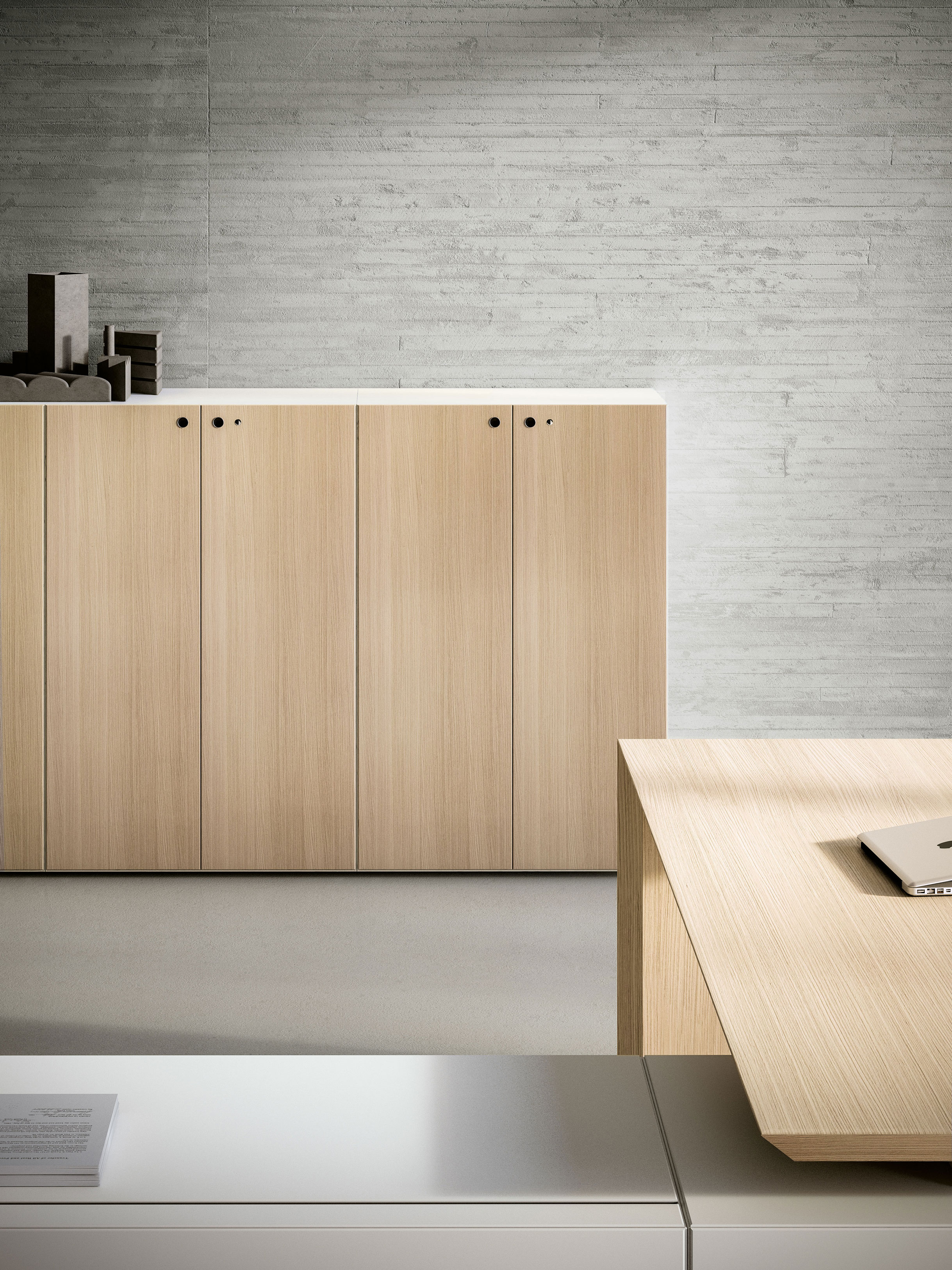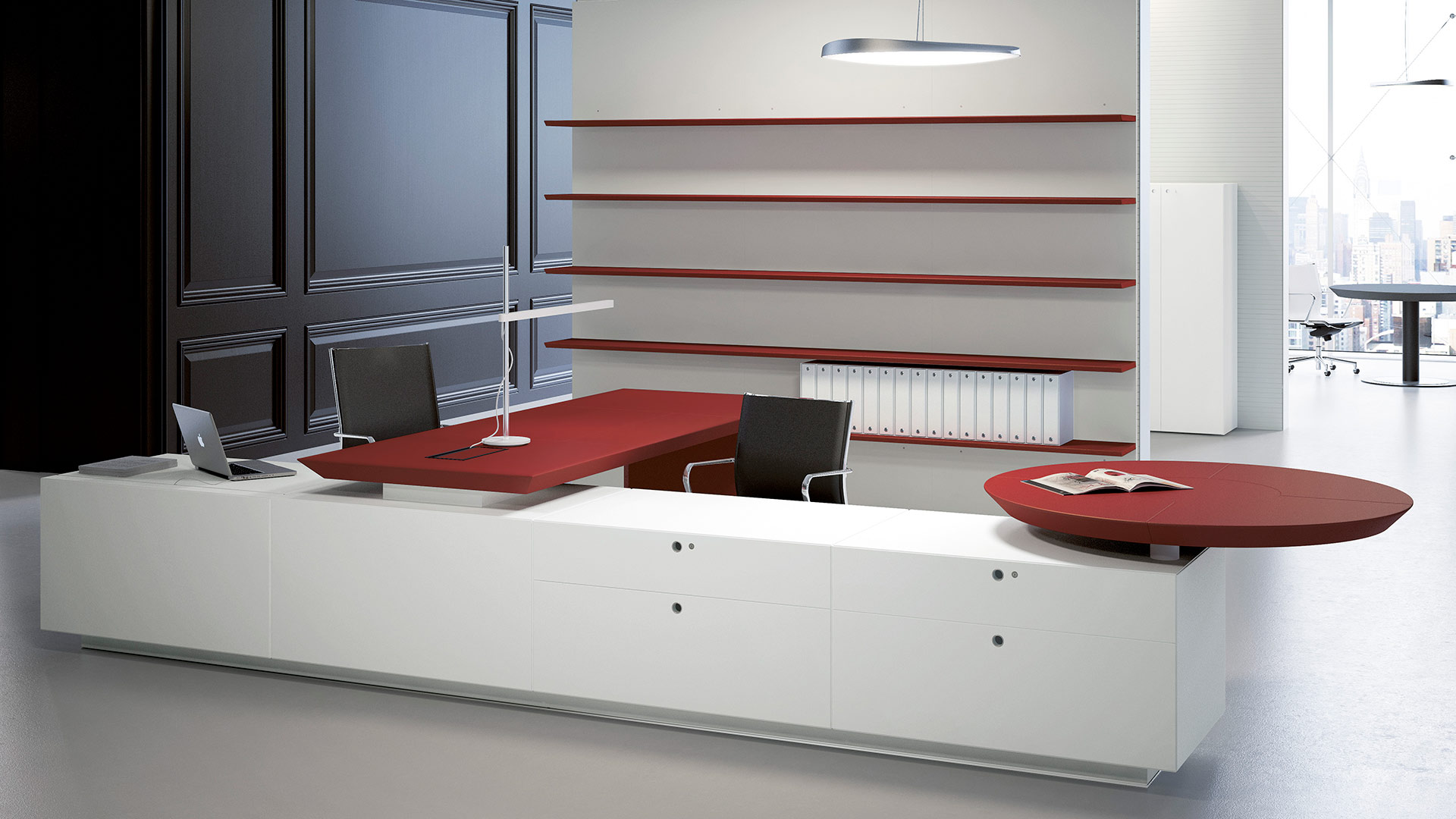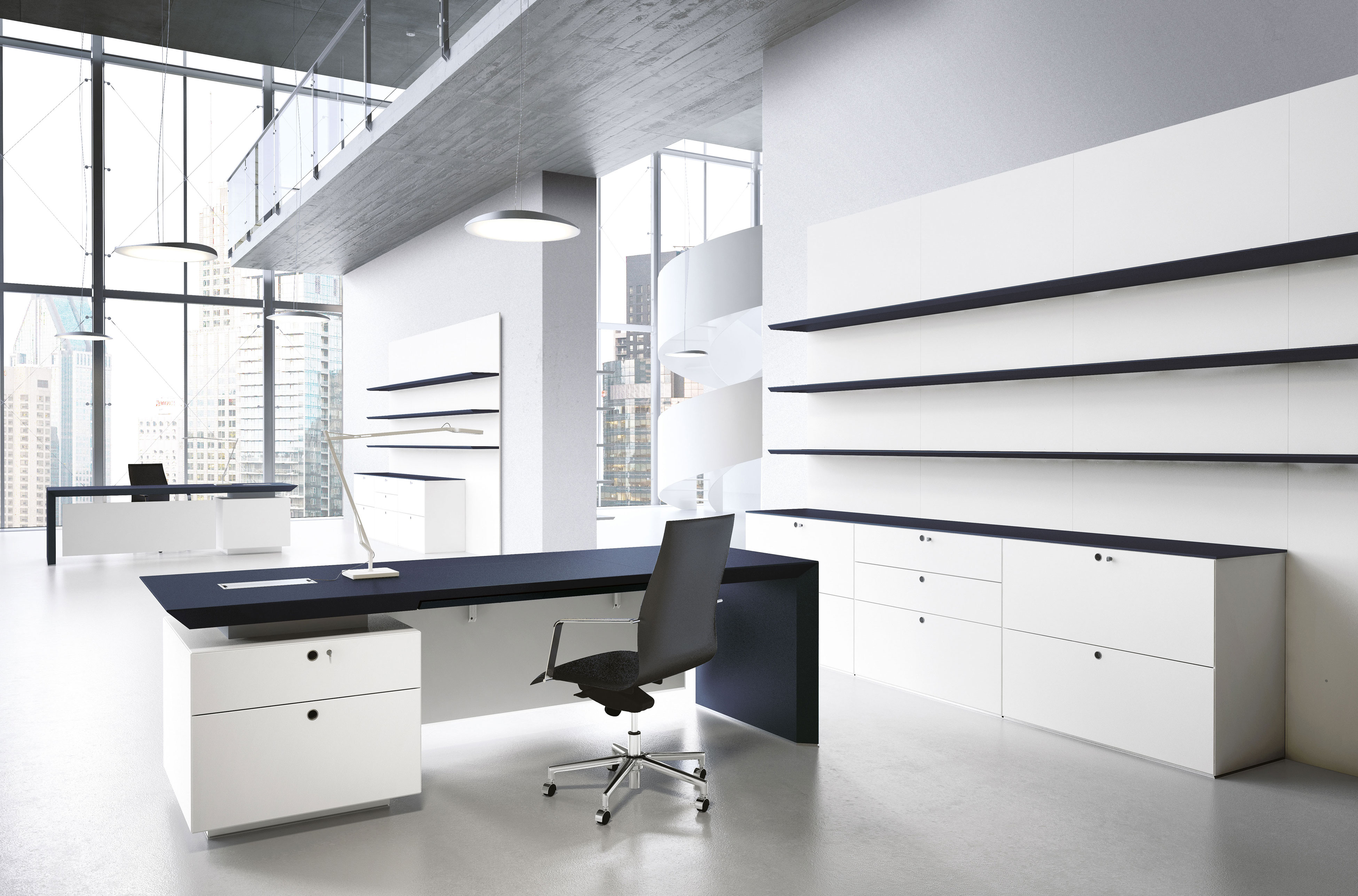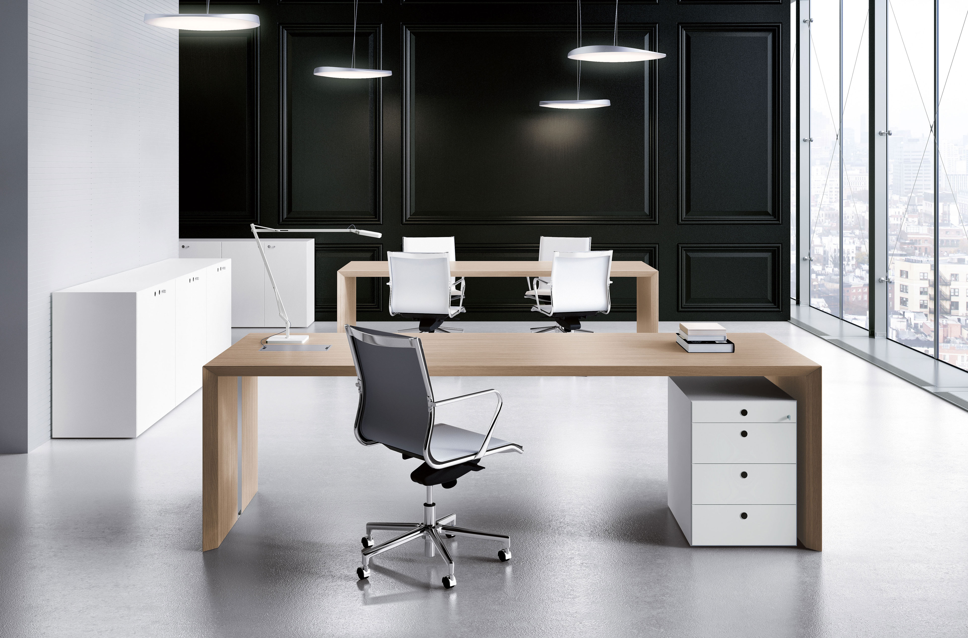 Linee essenziali e materiali pregiati definiscono un nuovo standard per gli uffici direzionali. La modularità degli elementi di base permette di configurare molteplici postazioni, garantendo un’eleganza senza tempo.