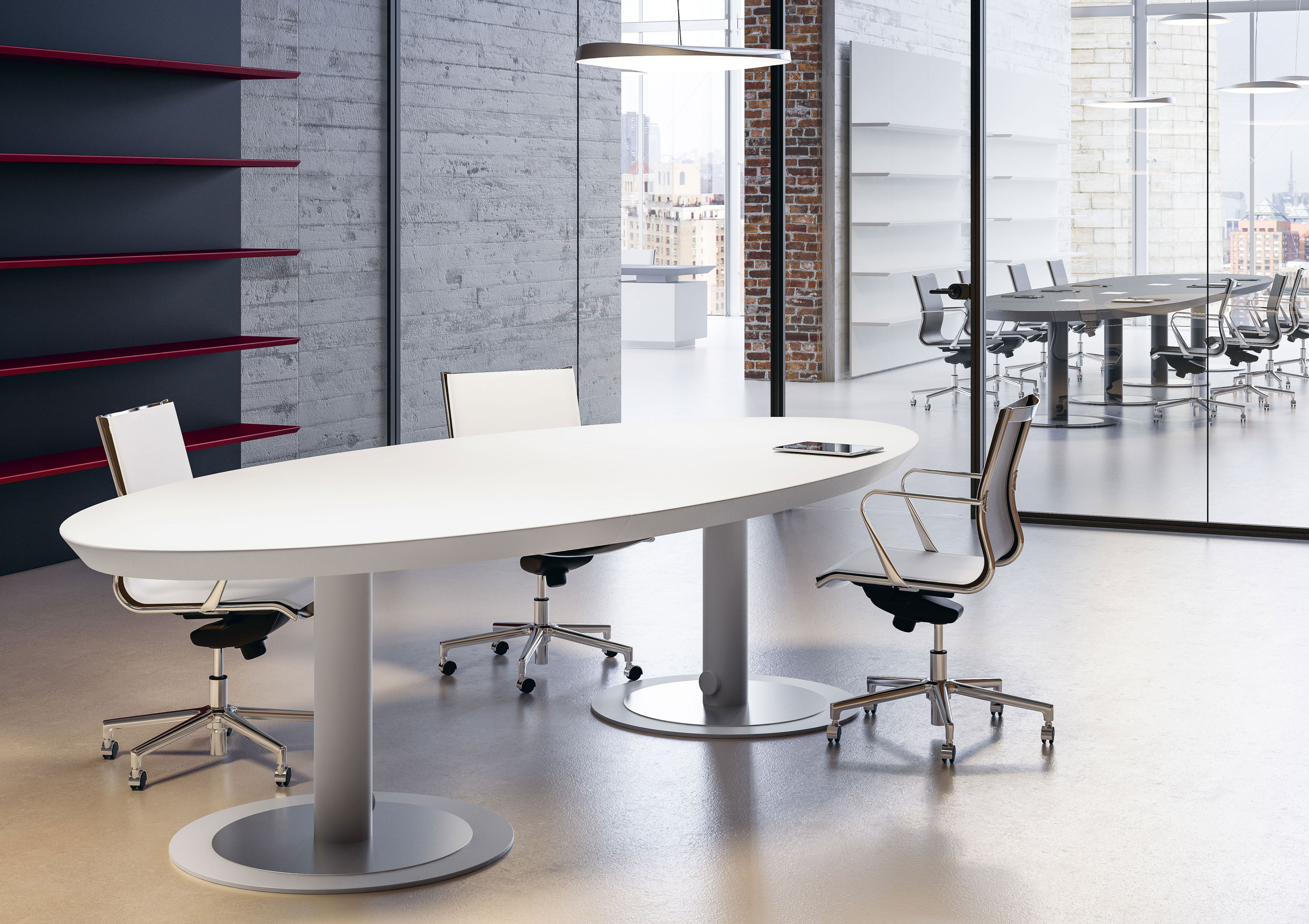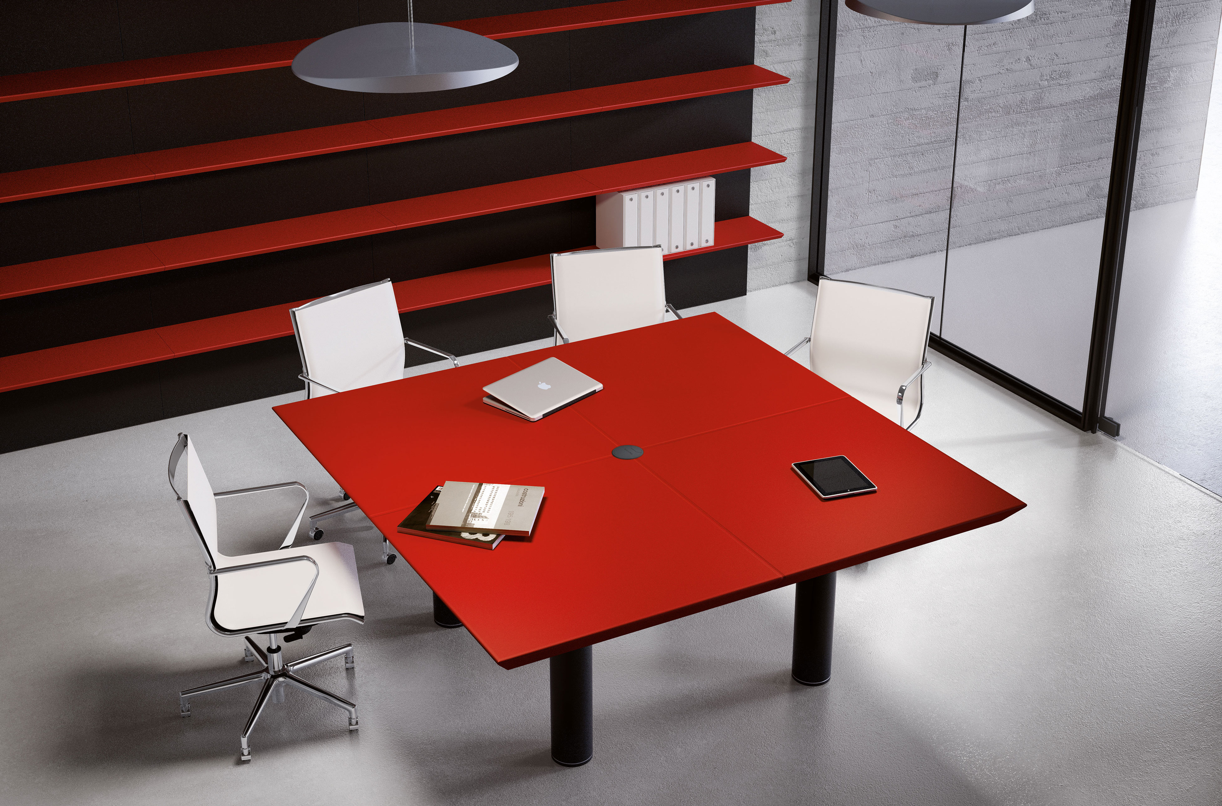 Il segno distintivo dei piani a 45° che collega esteticamente diverse collezioni Fantoni offre ai progettisti l’opportunità di gestire con coerenza l’arredo di diverse funzioni aziendali, dalle postazioni operative della collezione Méta e Quaranta5 fino alle collezioni direzionali Multipliceo.