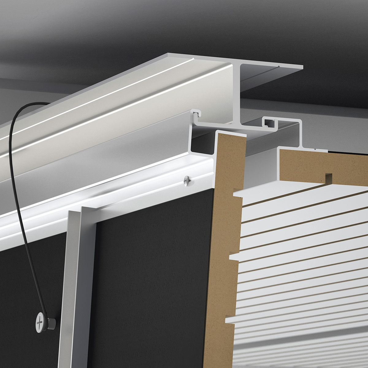Sistema modulare per soluzioni fonoassorbenti a controsoffitto, risponde all’esigenza di facile ispezionabilità dei controsoffitti e della manutenzione degli impianti sovrastanti. Il sistema di profili permette l’apertura