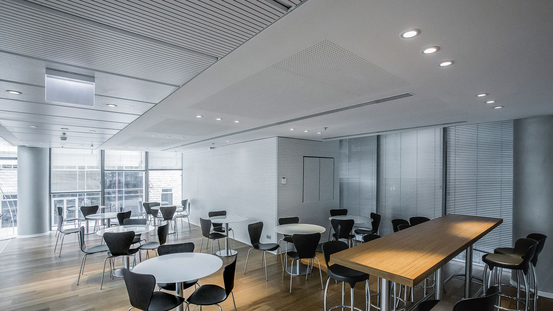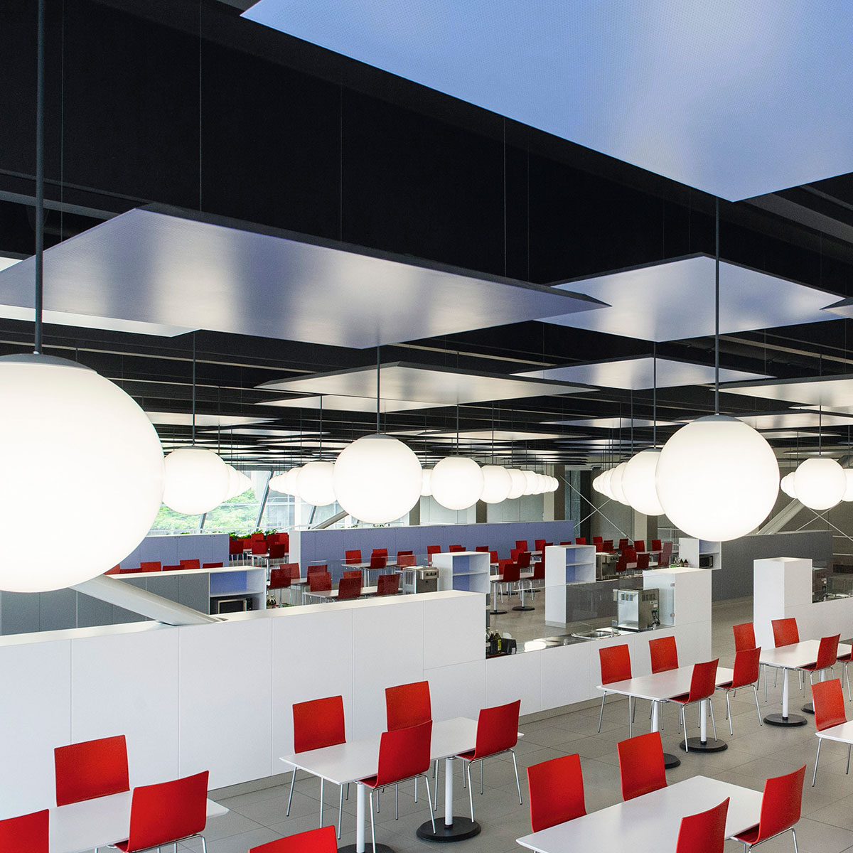 Il range di sistemi misti e i pannelli sospesi garantiscono soluzioni anche custom made per ogni luogo ad alta frequentazione che necessiti di correzione acustica. I vincoli architettonici non sono più un problema nella progettazione del benessere.