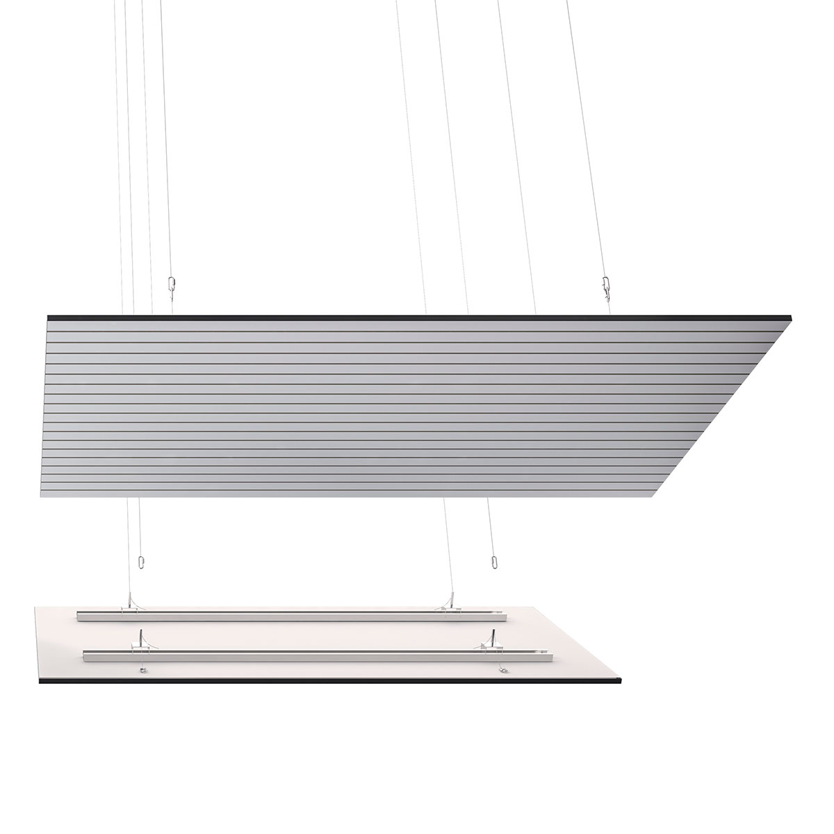 Sistema di moduli a sospensione ad elevate prestazioni fonoassorbenti, studiato per migliorare l’acustica di qualsiasi ambiente, anche laddove i vincoli architettonici impediscono di lavorare a parete o a soffitto. Una gamma di quattro tipologie di pannelli, con maggiore o minore densità di fresate e fori posteriori, offre una vasta possibilità di impiego, con i migliori risultati di fonoassorbenza.