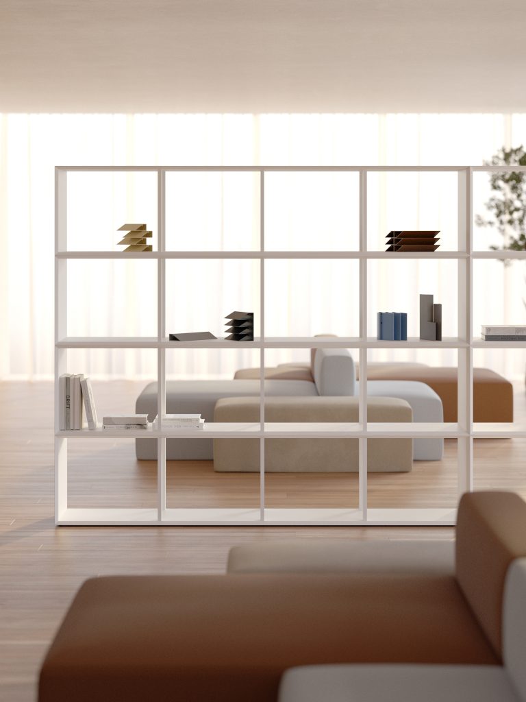 Librerie Atelier a giorno per ambienti di lavoro contemporanei.