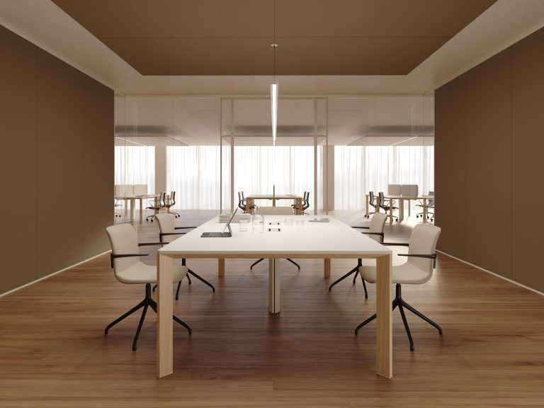 Tavoli per sale riunioni da 4 a 16 posti con gestione cavi integrata. Configurazioni fisse e modulari per ogni tipologia di meeting.
